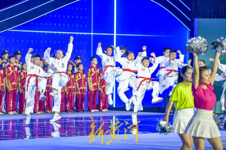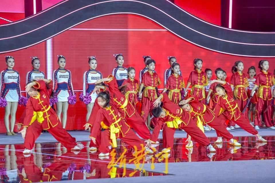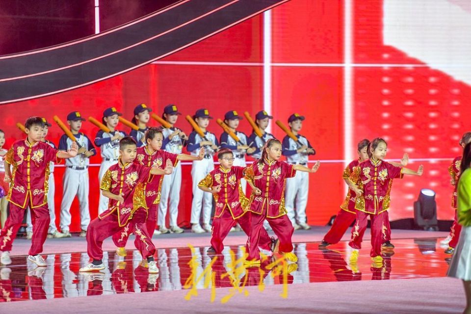 10月11日晚,济南市第一届运动会开幕式在济南奥体中心东荷体育馆举行。济南市第一届运动会设置青少年组、驻济高校大学生组、职工组三个组别,运动员入场环节结合各组别特色进行创意展示,这既是一次团队风采的亮相,又是一次团结协作体育精神的传扬。其中青少年组入场时,来自全市15区县(功能区)代表队全部由中小学生组成,分别展示各个区县(功能区)的特色体育项目,不仅有传统项目武术、足球,还有新兴比赛项目啦啦操、霹雳舞和棒球,展现出新时代青少年阳光健康、多才多艺的精神风貌。