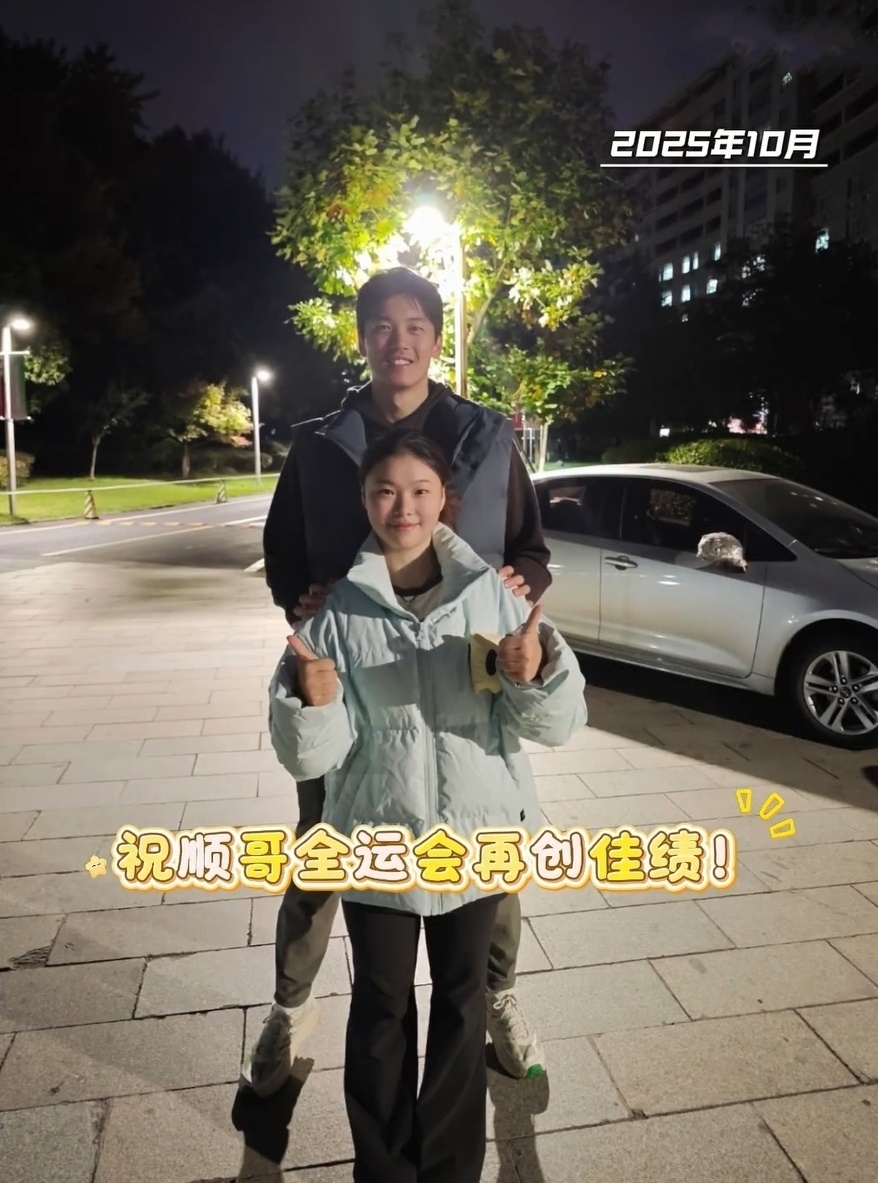 今天(10月31日)下午,东京奥运会女子体操平衡木冠军管晨辰,在个人社交平台上发布一个由5张与汪顺合影组成的小视频,预“祝顺哥全运再创佳绩”。